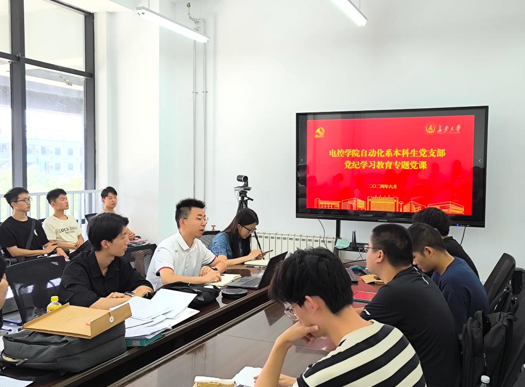 自动化系本科生党支部在明德园智通大厦学院319会议室开展党支部书记讲党纪学习教育专题党课活动。党支部全体党员参加党课,党课由党支部书记高朋举主讲。