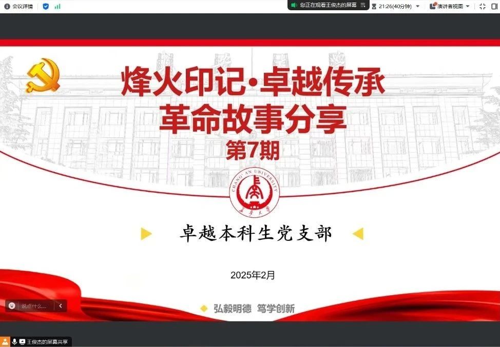 为弘扬红色文化,传承革命精神,2月13日,成人有声小说 卓越本科生党支部举行了“烽火印记 卓越传承”革命主题故事分享活动(第7期)。此次活动的主题聚焦抗日英雄杨靖宇,全体支部成员共同参与,在英雄事迹中感悟革命先辈的伟大与崇高。