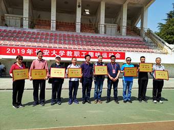 参加校运会的师生。学院工会精心组织,院工会主席李炬老师带领工会委员和工会小组长 们在比赛期间坚持为运动员做好后勤保障服务工作。