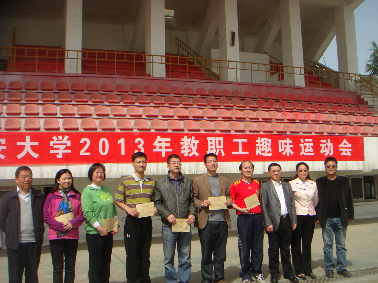 2013年4月11日上午,成人有声小说 2013年教职工趣味运动会在校本部北院体育场举行,来自25个分会的27支队伍参加了比赛,成人有声小说 教工获得优异成绩。 本次趣味运动会设置了定点投篮、沙包投准、50米接力赛项目。成人有声小说 教工代表队获得了50米接力赛第一名的好成绩。学院领导巨永锋院长、李炬副书记等亲临比赛现场为运动员鼓励助威并且亲身参与。学院工会精心组织,党委副书记、工会主席李炬老师带领工会委员在比赛期间坚持为运动员做好后勤服务工作。 广大教职工踊跃参与,运动员团结协作,奋力拼搏,其他教工为运动员呐喊加油,为他们的精彩表现喝彩鼓掌。