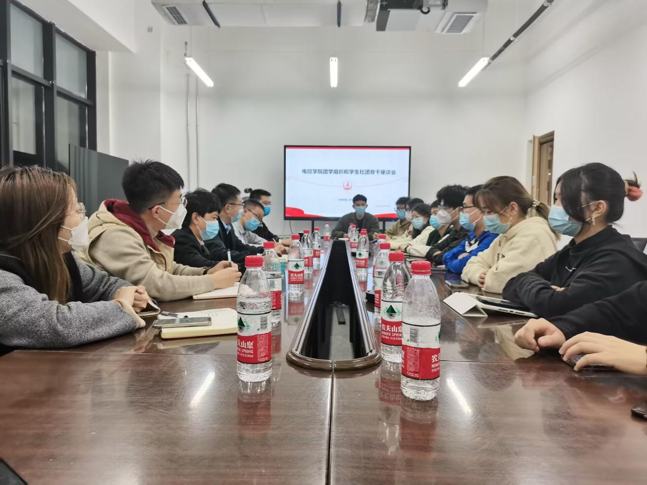 团学组织和学生社团骨干座谈会在学院会议室举行。院领导李阳、院团委副书记王博、高朋举,辅导员张馨月、陈凡等参加座谈会,院团委书记王斌娟主持会议。