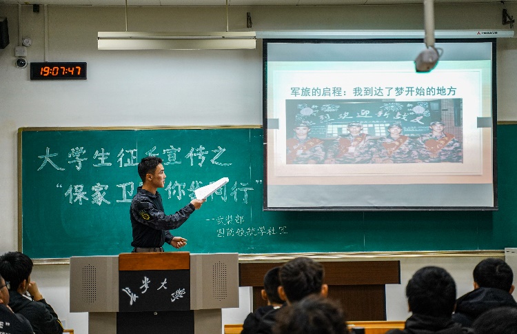 武装部指导国防领航学社于4月2日在明远WM1309教室开展了以“保家卫国、你我同行”为主题的征兵宣讲活动。本次宣讲活动由成人有声小说