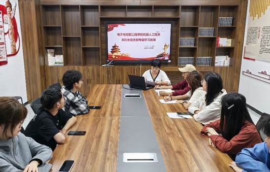 王斌娟向全体党员强调了党纪学习教育常态化长效化的重要性,带领全体党员认真“学习习近平总书记重要指示精神研究部署巩固深化党纪学习教育成果工作”、“习近平在全国教育大会上强调紧紧围绕立德树人根本任务朝着建成教育强国战略目标扎实迈进”等文件,并要求支部党员要持续深化党的政治理论学习、加强党纪学习,充分发扬彻底自我革命精神,始终做到政治上对党绝对忠诚、行动上严守纪律规矩,在学生中起到模范带头作用,为教育强国建设贡献青春力量。