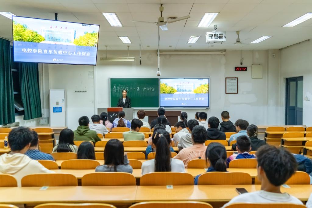 青年传媒中心于北校区WM1215教室召开新学年第一次工作例会。电控青媒指导老师陈凡出席会议,电控青媒全体成员参加会议。