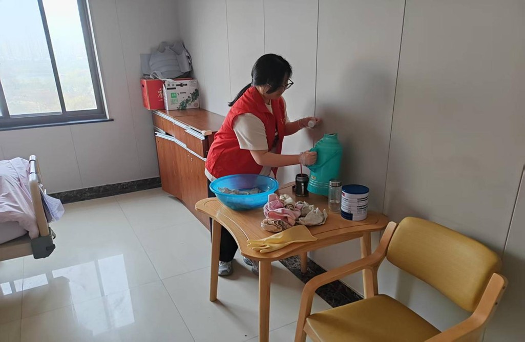 上午9时,志愿者们抵达养老院后迅速分组行动。一部分同学拿起扫帚、抹布,认真打扫庭院、擦拭走廊窗户、整理公共活动区,使养老院的环境焕然一新。另一组志愿者走进老人房间,陪他们聊天、读报,倾听他们讲述过往故事。