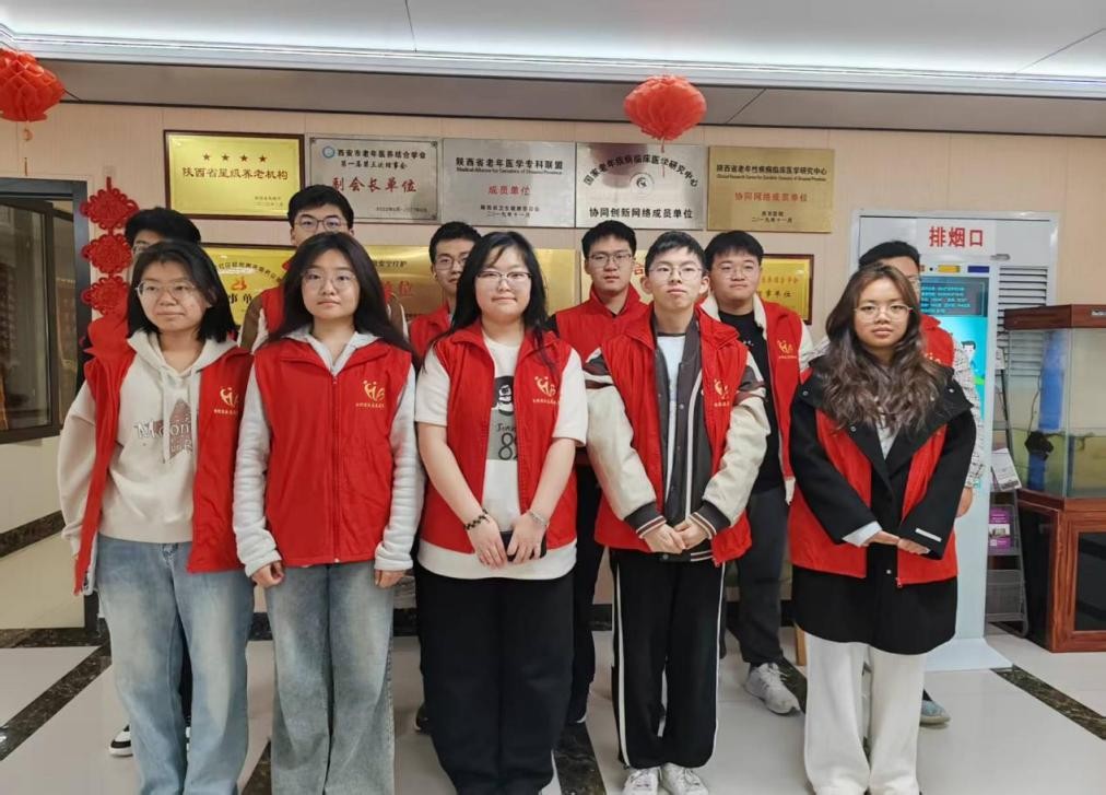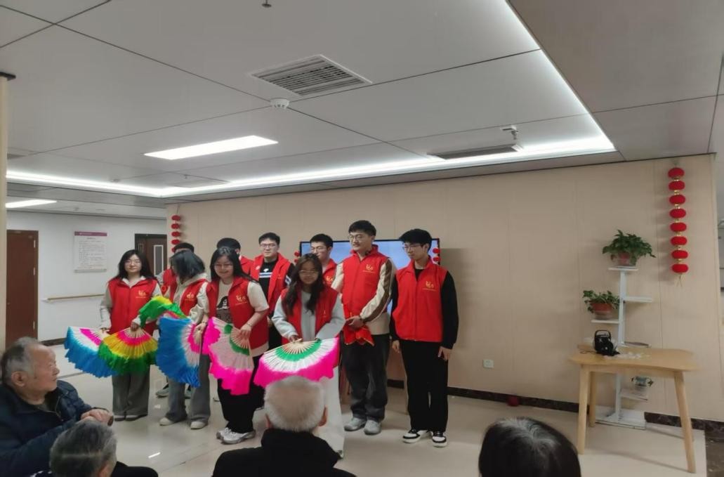 青年志愿服务队的志愿者走进西安唐城医院松鹤养老院,开展敬老爱老志愿服务活动,通过陪伴互动、义务劳动和文艺演出等,为老人们送去关怀与温暖。