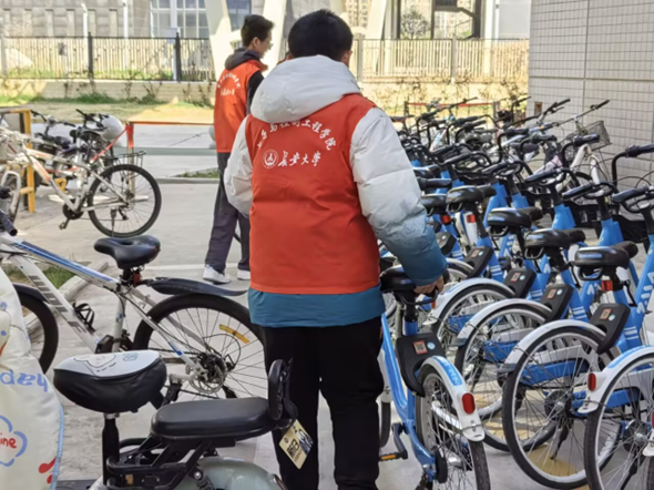 活动当日,学院团委书记李慧与青马班学员们集合在校园共享单车停放点。共享单车停放杂乱无章,不仅影响校园美观,阻碍了正常通行。在负责人的有序安排下,成员们迅速分工,有条不紊地投入工作。他们将一辆辆共享单车扶起,按照车头一致、排列整齐的标准重新摆放至指定区域,过程中,大家不怕脏、不怕累,积极协作。经过近两个小时的努力,原本混乱的单车停放区域焕然一新,一排排单车整齐有序地排列着,成为校园内一道别样的风景线。