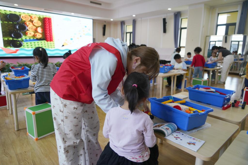 志愿者指导幼儿实操