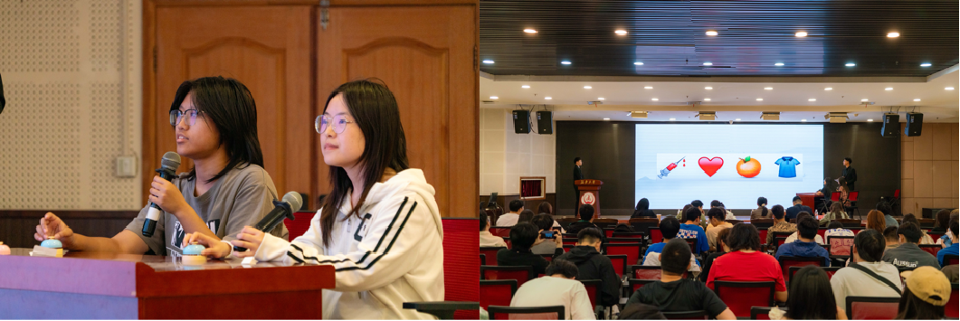 4月15日“图影觅语”决赛在大学生艺术中心三楼多功能厅举办,现场氛围热烈。比赛巧妙地将中华优秀传统文化中的成语与现代表情符号相结合,为同学们带来了一场别开生面的“文化解码”盛宴,现场吸引了众多同学的关注与参与。赛场上,选手们各个全神贯注,凭借扎实的知识储备和敏锐的思维洞察,在表情与成语之间迅速建立联系。台下观众用热烈的掌声和欢呼声为选手们加油鼓劲,共同沉浸在这场充满趣味与文化底蕴的盛会中。