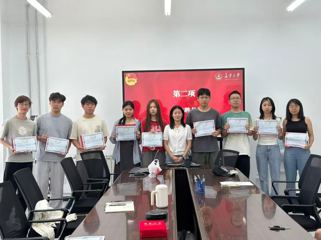 李慧为2024—2025学年院青思主席团成员、部门负责人颁发聘书,对本学年主席团成员、部门负责人的辛勤付出表示感谢,并对青思新任干部提出了几点要求:一是要平衡学业与工作,兼顾工作与专业学习,做到“两手抓、两手硬”,以扎实的学业基础支撑工作效能提升;二要发挥模范作用,以身作则、严于律己,在思想觉悟、工作作风等方面树立标杆,以实际行动带动身边同学;三要凝聚团队力量,注重沟通协作,以真诚态度增进部门间理解信任,通过集体智慧破解工作难题。