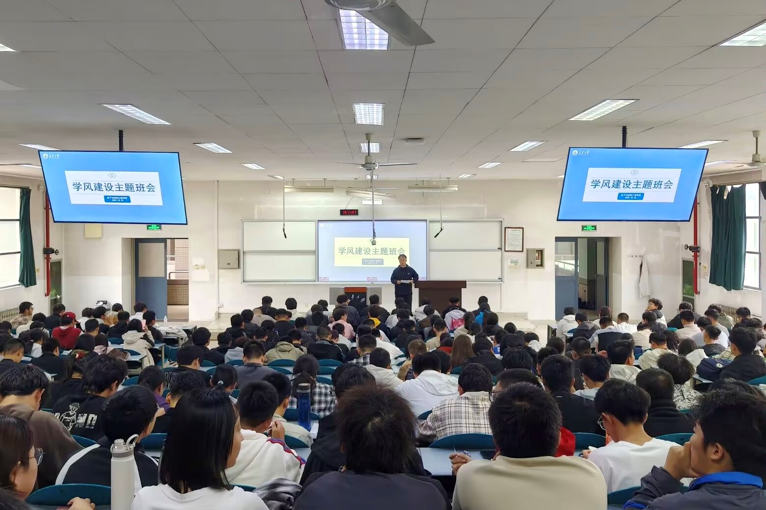 在WM1201教室顺利开展了2025级新生学风建设主题班会。本次班会由2025级本科生辅导员吴耀东、孙超共同主持,全体2025级本科生参与。