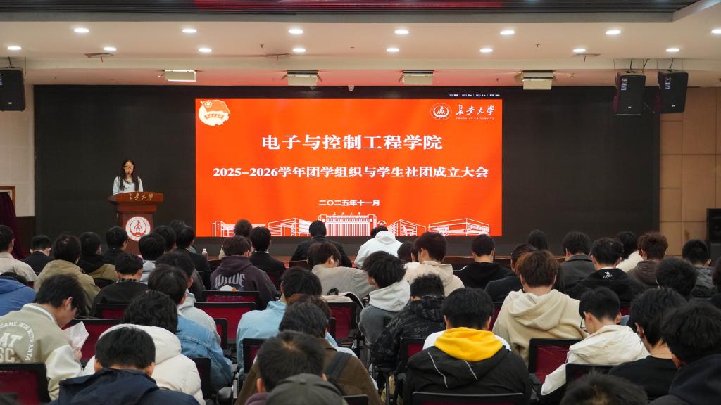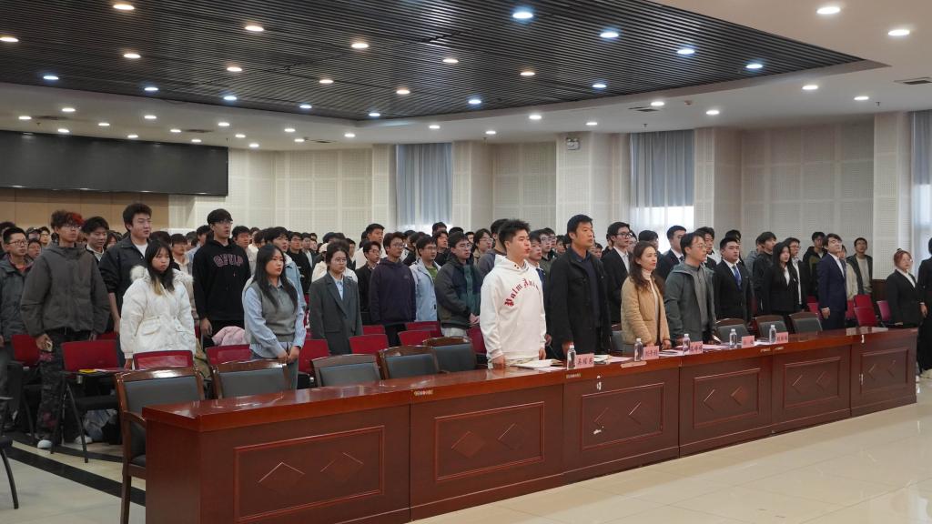 2025-2026学年团学组织与学生社团成立大会在北校区长安文化艺术中心三楼多功能厅举行。学院党委副书记高婷婷,学办全体辅导员,团学组织与学生社团全体成员参加会议。会议由学院团委副书记胡佳瑞主持。