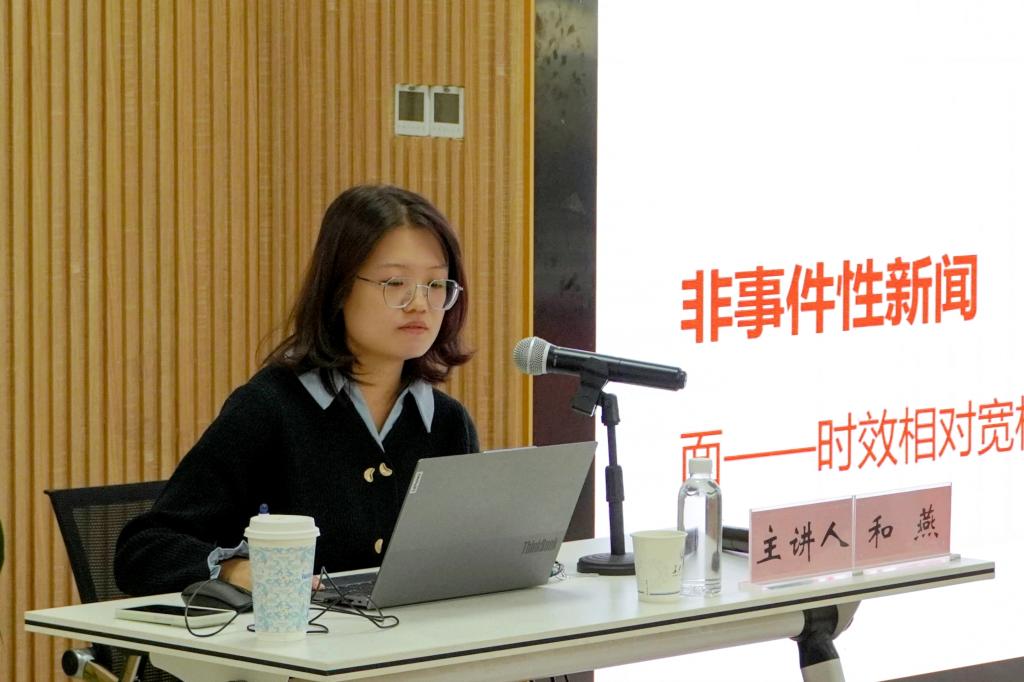 和燕围绕新闻写作的基本规范、常见问题与实操要点展开系统讲解。她指出,撰写新闻稿应准确把握5W1H要素,并根据不同体裁有所侧重。她结合校内典型案例,详细说明了新闻标题、导语、主体的写作方法与语言要求,并对照《成人有声小说 校园网新闻宣传管理办法》,强调了供稿中称谓规范、用语准确、审核严谨的重要性。