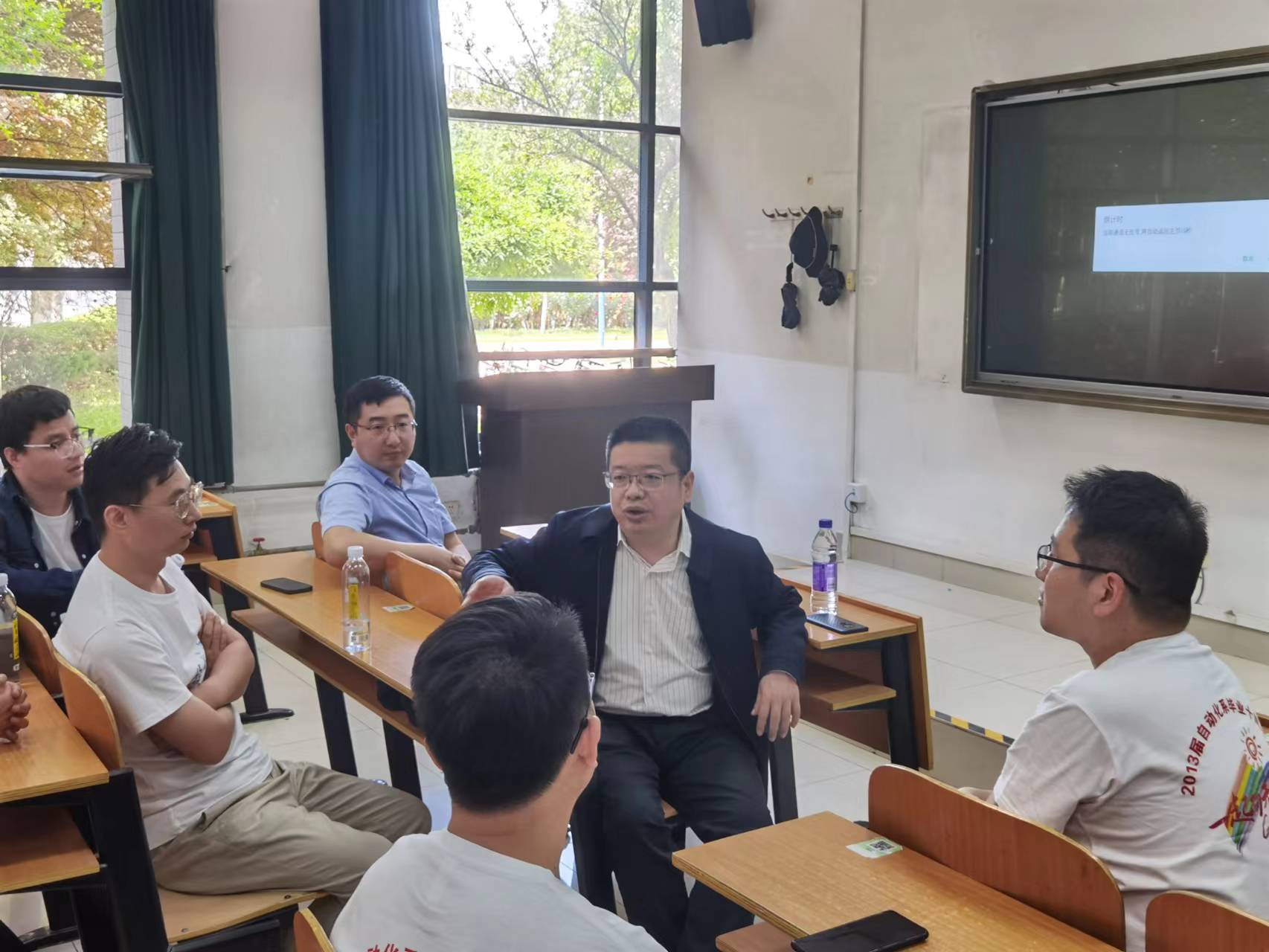 自动化专业2013届校友20余人从祖国的四面八方汇聚母校,回首大学生活,共话青春情谊。当日下午,学院在北校区明远教学楼举行了“悠悠长安心,拳拳渭水情”主题座谈会,学院院长闫茂德、学院党委副书记李阳参加活动。