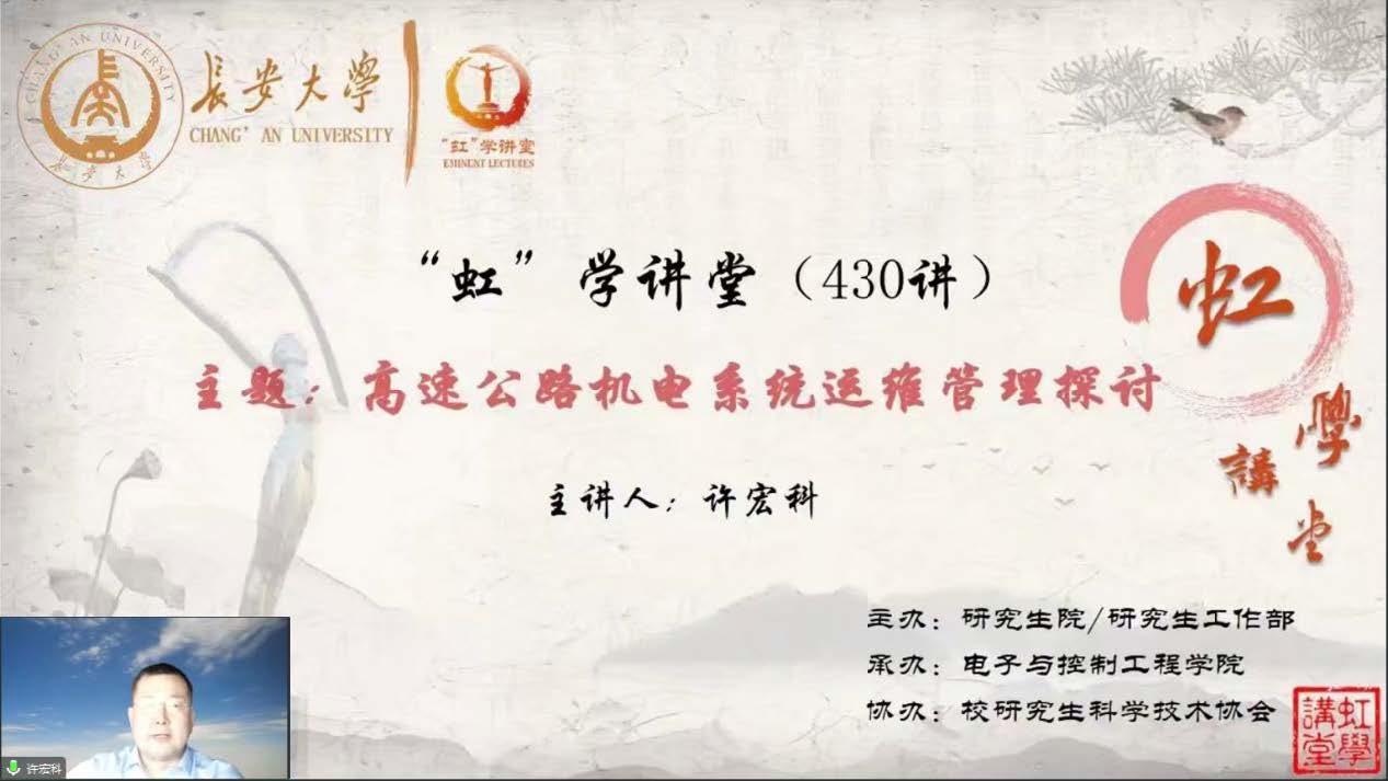 许宏科教授作了题为“高速公路机电系统运维管理探讨”的报告,相关学院近300名师生参加讲座。