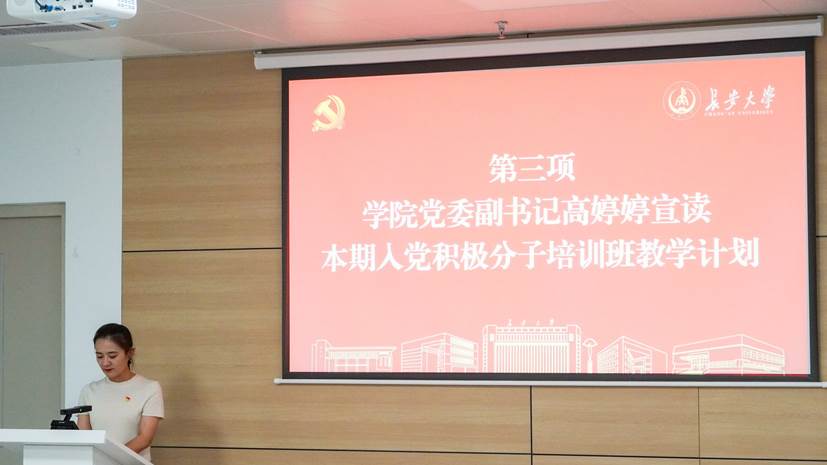 高婷婷介绍了本期入党积极分子培训班的学员规模及分组、课程安排等情况;希望广大学员坚持集中培训和自我学习,将理论学习和线下实践相结合,进一步坚定听党话、跟党走的思想自觉和行动自觉。